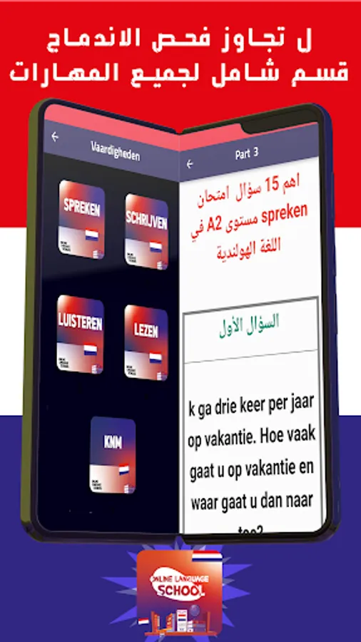 Fifth: Dutch language skills: We have developed many exam forms for all Dutch language skills with full squint, in addition to the most important methods and secrets that will make you able to write complete topics in the Dutch language and pass exams without fear