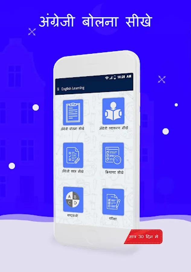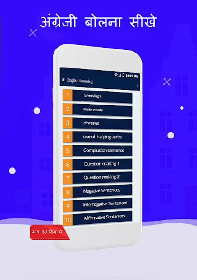 English Speaking App in 30 days is the easy yet very interesting English Learning app. Moreover, it has 30 days free English-speaking course in Hindi. This app teaches you English in easy Hindi language. It is specially made for Hindi users.