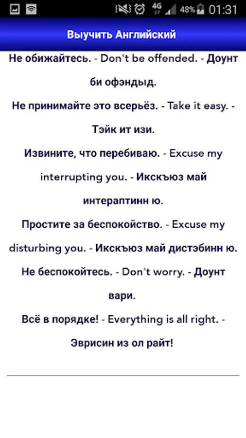 Self-taught English is aimed at effective and exciting learning. After completing the course, you will gain basic knowledge of grammar, be able to build logically correct sentences and communicate freely on simple everyday topics. The lexical base of the application expands as the course progresses. Already learned words are regularly repeated in subsequent exercises, which does not allow you to forget the material covered. In addition, you always have the opportunity to return to completed tasks and improve the previous level.