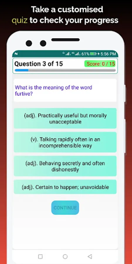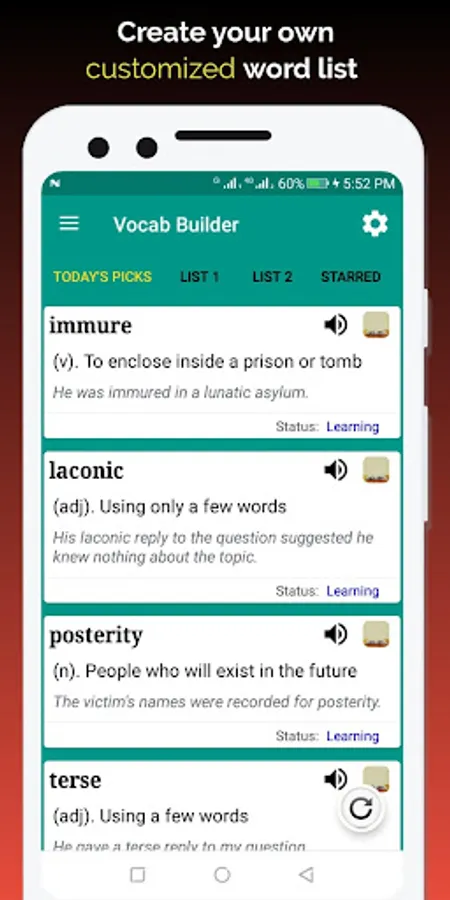 This app, targeted to High School students, contains carefully selected words required for high school level English language. The app also contains vocabulary lists that a student should be familiar with to score high in the new SAT examination. Every word in the app contains a meaning and a sentence to demonstrate its usage. Furthermore, phobias and manias are included for enthusiastic learners.