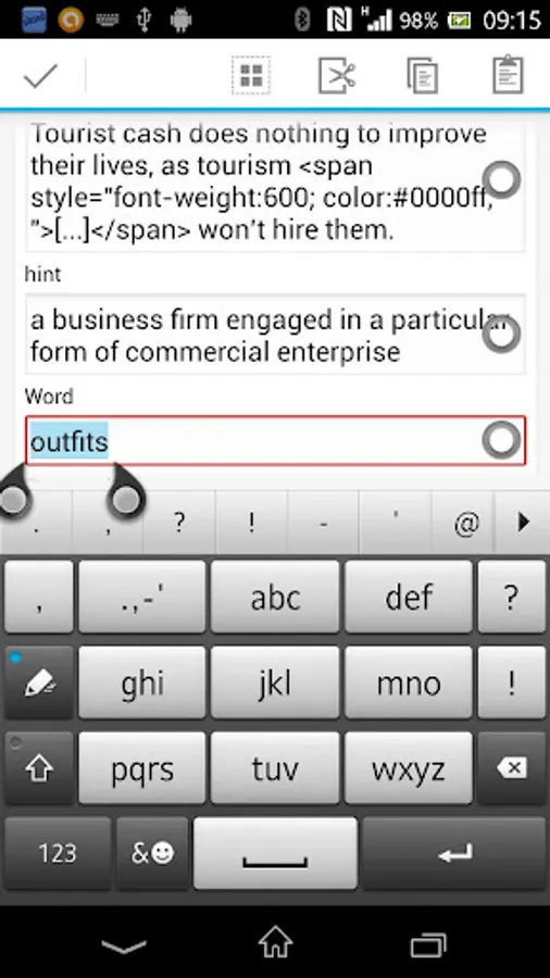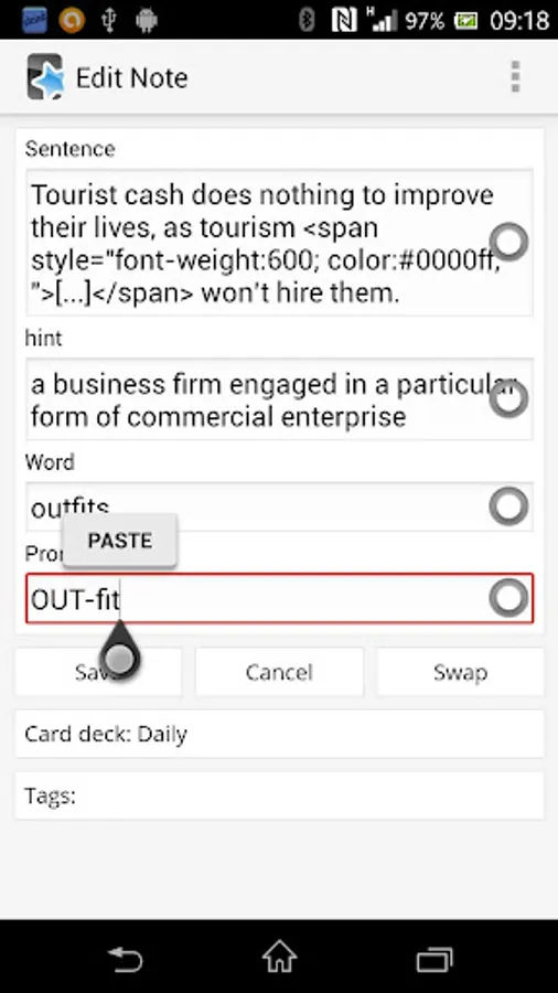 1. In Ankidroid's Edit Card screen, copy the target word.
