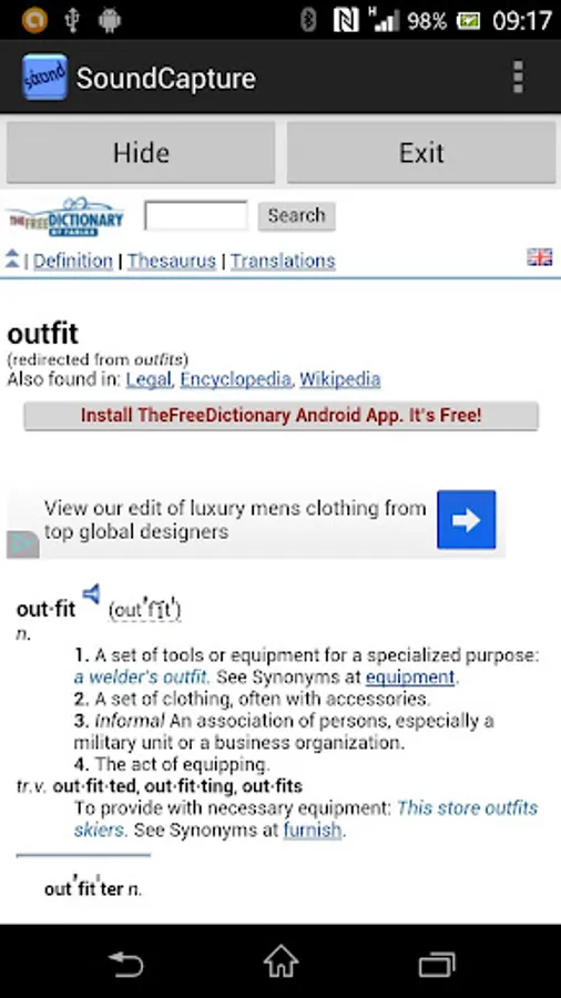 2. Start Sound4Ankidroid. (The app searches the word in the clipboard automatically.)