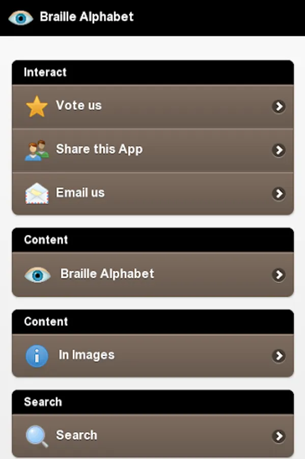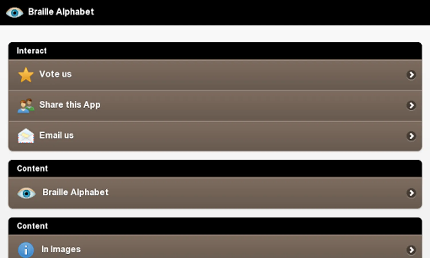 Learn the Braille alphabet with this application. If you have someone visually impaired or with other visual dysfuntion in the family and want to learn the Braille alphabet now you can with this application. Obviously you can not practice with mobile, it is not possible, but you will learn all the theoretical Braille language. Our selected lessons and classes will help you understand the braille with ease, and it is free.