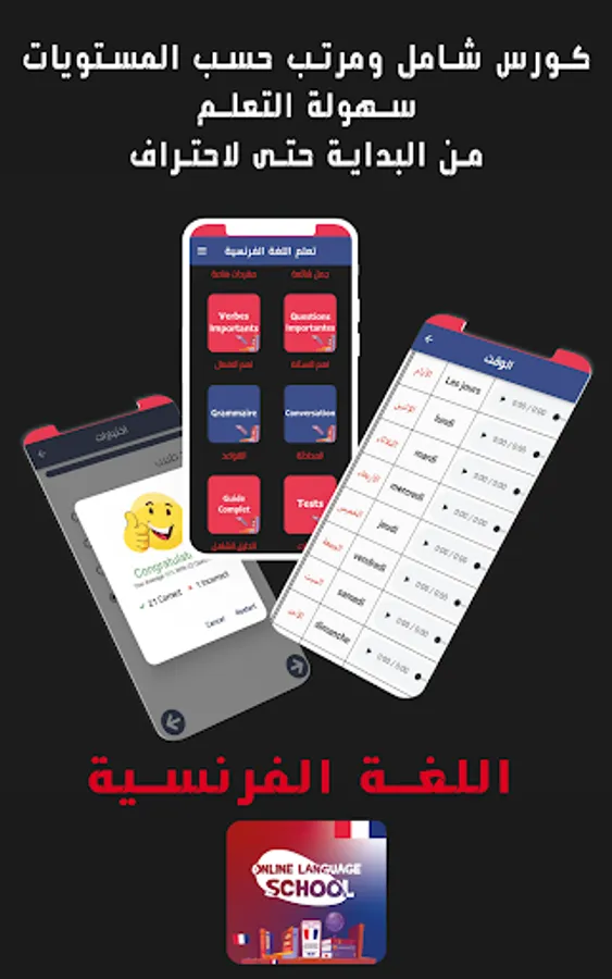 This application is an integrated course to learn the French language for beginners from scratch to professionalism, as you will find in it more information from the school because it is explained in a simplified way and prepared by specialists in this field