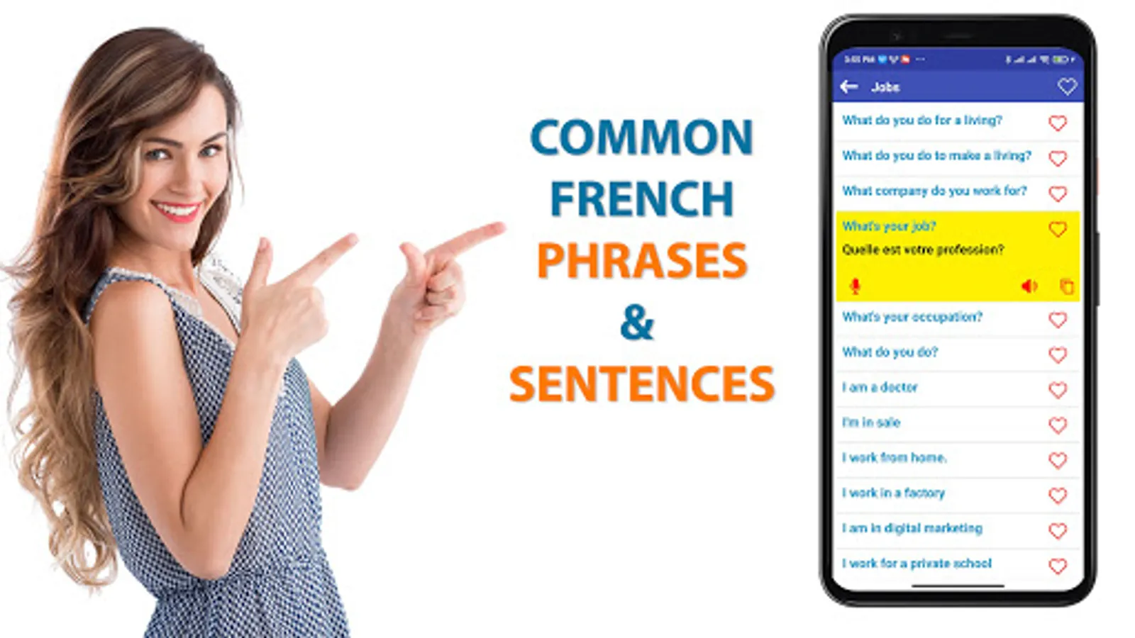 Learn French Language Free application was developed for those who want to learn French phrases and sentences quickly and free!