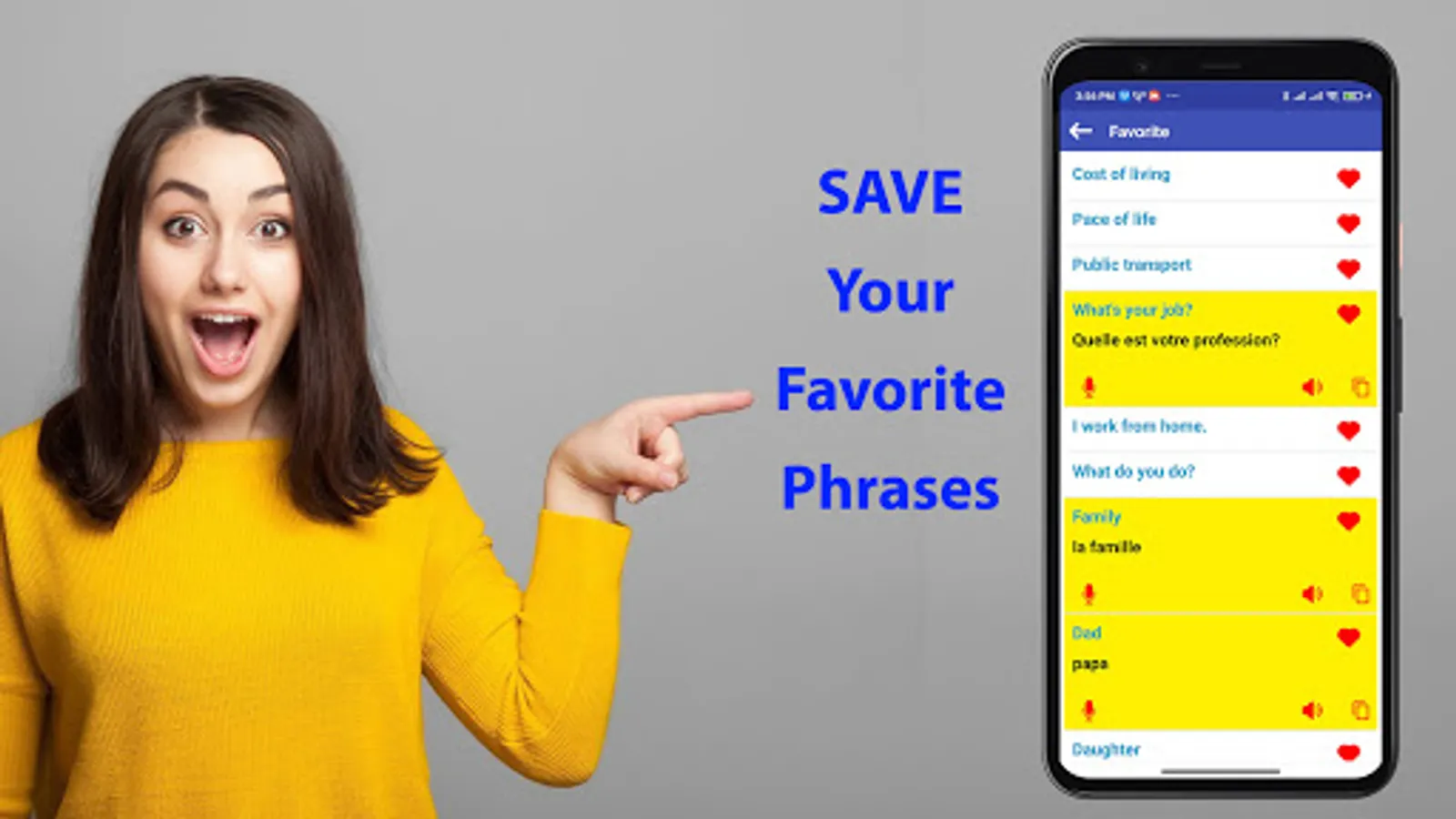 With the Learn French Phrases application, you can now explore over 3000 French phrases for daily French conversations while having fun! Whether you’re a tourist having a vacation in French or someone who wants to learn the French language, this application will help you learn French phrases in a fast, easy and enjoyable way.