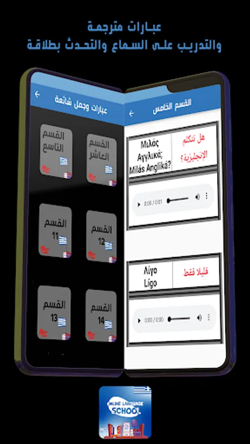 Third: Common Greek sentences and expressions, which are more than 1000 renewed sentences divided into several levels and with varying degrees of difficulty Suitable for beginners and advanced inclusive of all topics used in public life Supported by translation and audio to facilitate study
