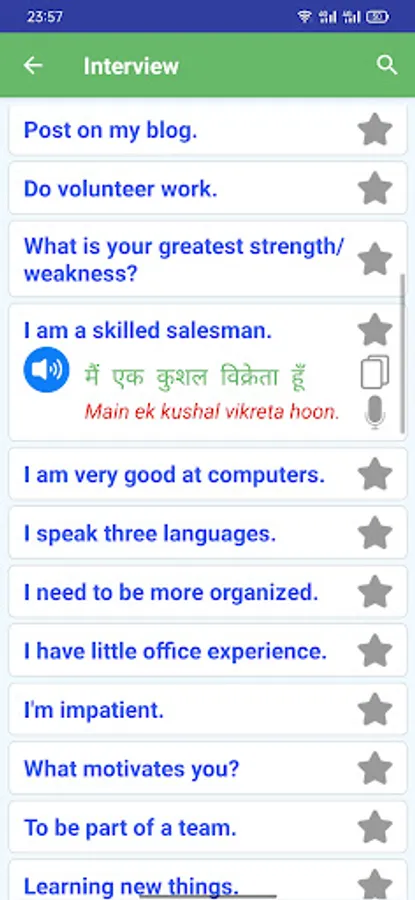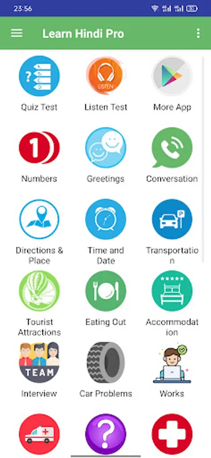 Learn Hindi Language Offline Pro has 1189 common phrase in Hindi Language with sound and you can use all of them without network. Very useful for you learn and go to travel to the world.