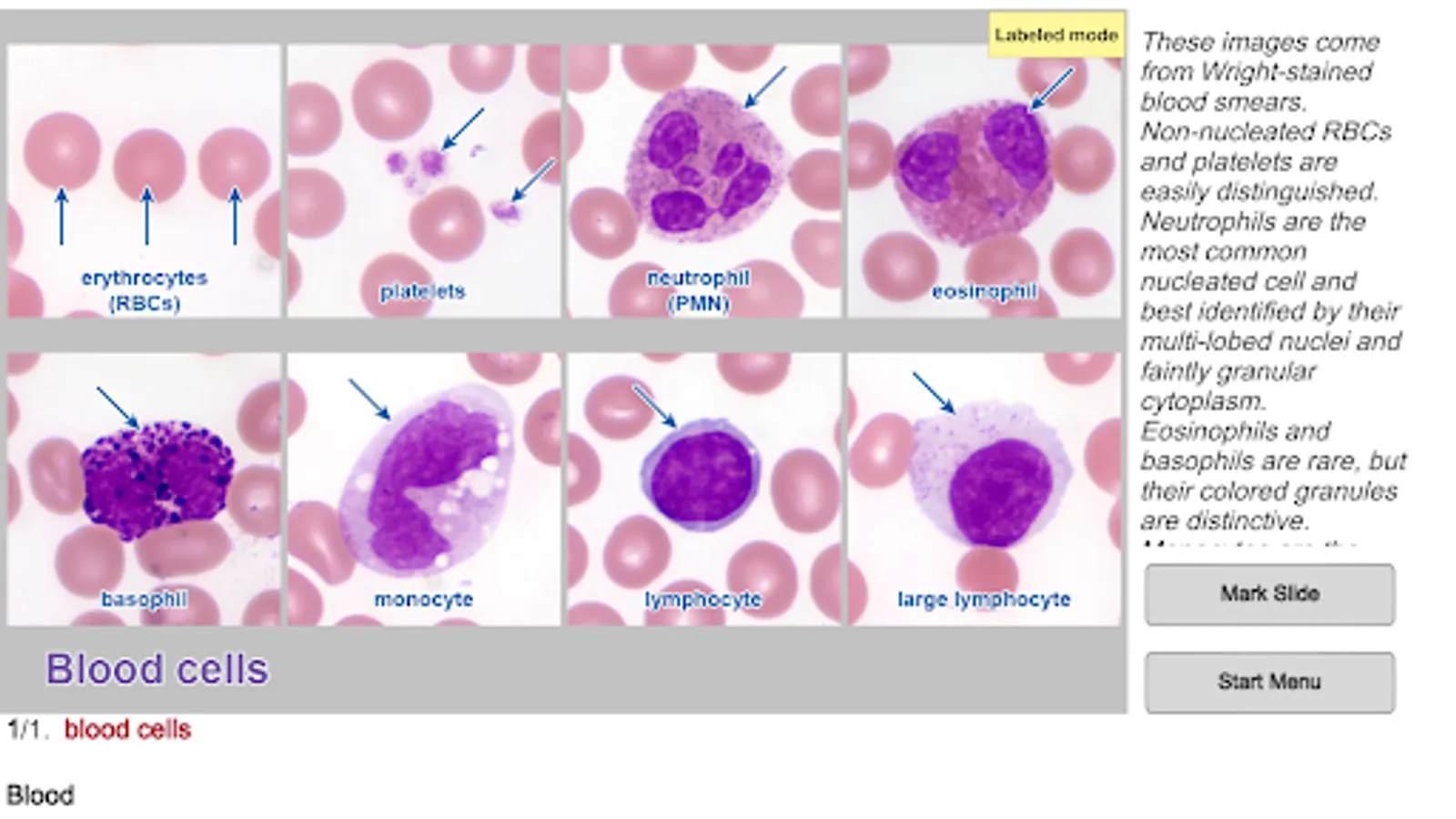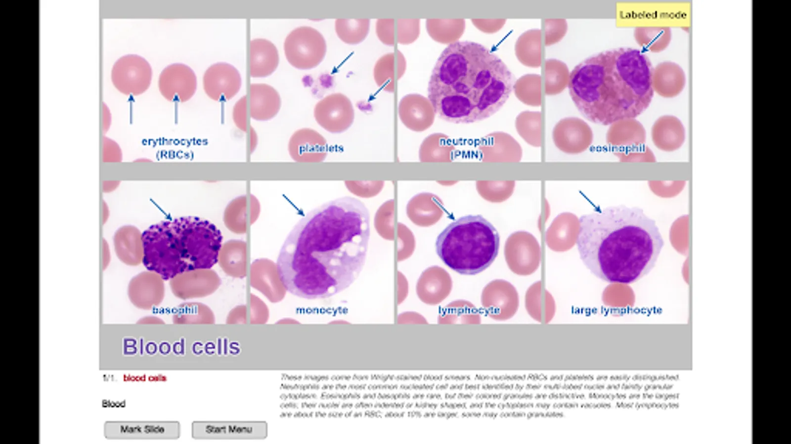 Slides in any of the modes may be marked for additional review. Marked slides can be removed as they are mastered.