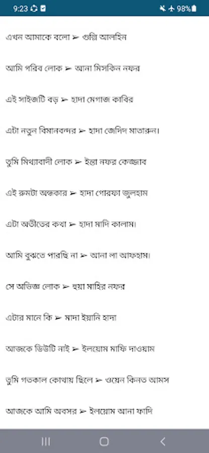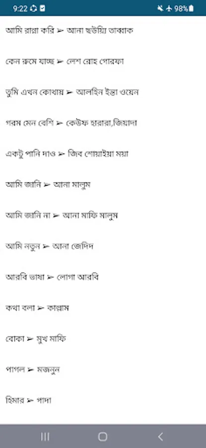 Are you weak in Arabic or afraid to speak in Arabic then you can easily learn Arabic in this app. This app has 2 advantages. 1 is Bengali to Arabic language learning.