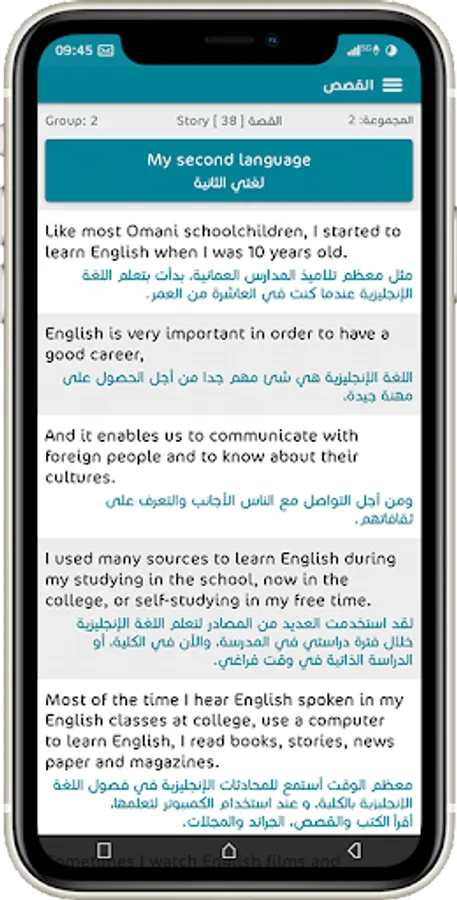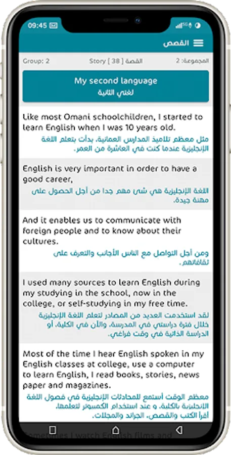 Stories: It includes a large collection of short translated English stories that will make you feel fun when learning the English language quickly and efficiently.