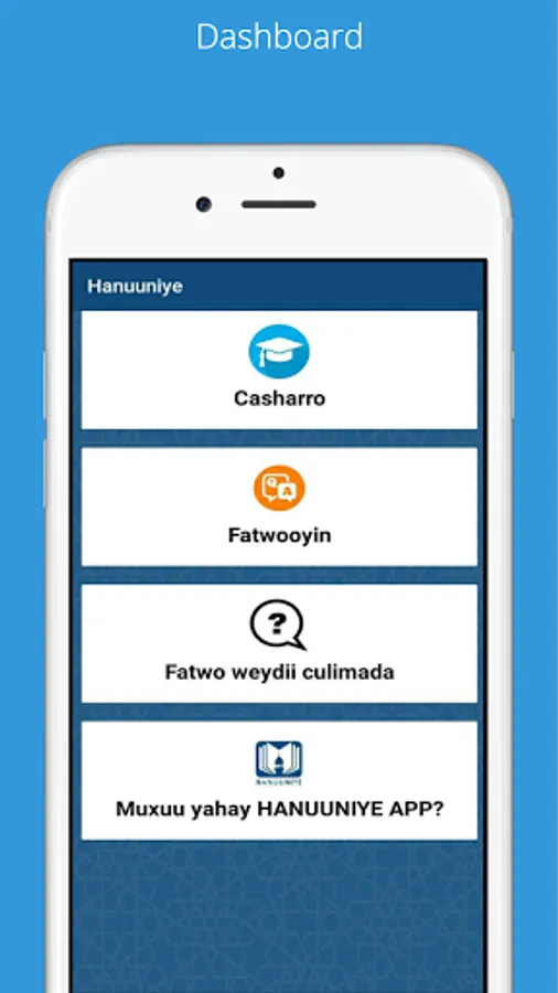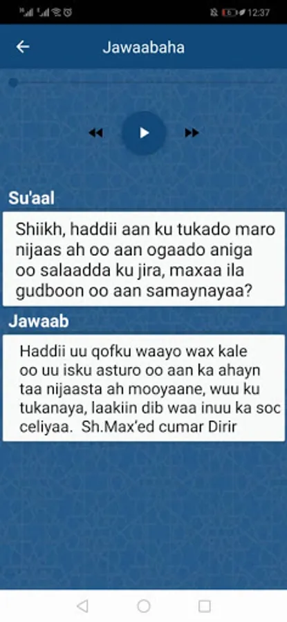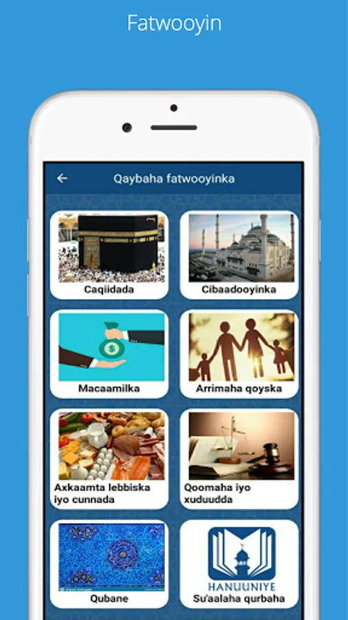 Intaas waxa dheer, su’aalo ama fatwooyin diini ah oo culimada ugu waaweyn ee soomaalidu ay ka jawaabeen, iyaga oo u diyaarsan hab qoraal iyo dhegaysi ba ah, iyada oo wixii wedyiin ah ee intaa aan ahayn ee uu macmiilku u baahdo uu si toos u soo weydiin karo culimada.