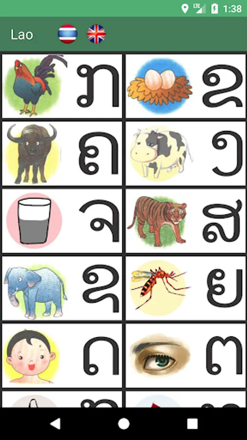 An application for teaching speaking practice Practice reading Lao, Thai and English with audio.
