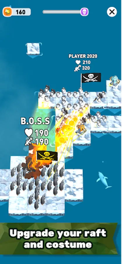 You can make your squad bigger by picking up a small penguin group from the surfing rafts, and they’ll become a part of your squad to win this survival raft game. The bigger your army, the better your chances to win this free Raft wars sea battle game. Tap and shoot at your enemy to earn reward and points to upgrade your free raft and character as well. Survive this Raft wars ocean battle and never stop shooting in this crazy new top raft war game.