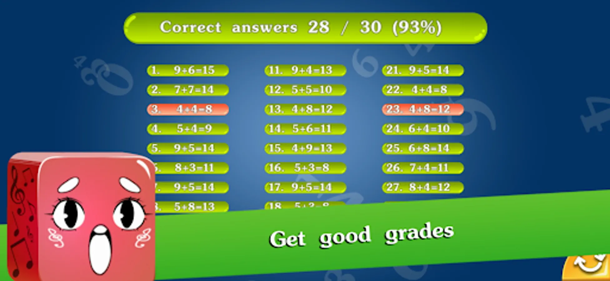 The application will help the child to quickly and easily master numbers and basic mathematical actions, as well as learn how to determine the time using the clock.