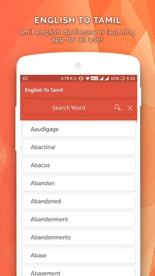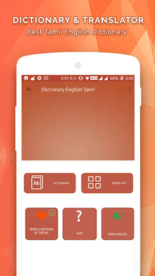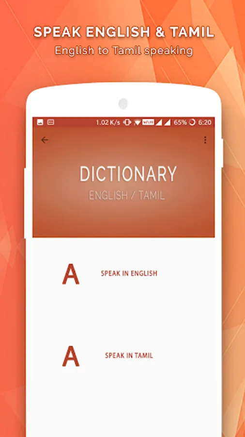 Use the dictionary option and improve your English vocabulary via this appEnglish to Tamil Dictionary and Tamil to English Dictionary and Tamil English Translator app allows you to type the English word as well as search via speech.