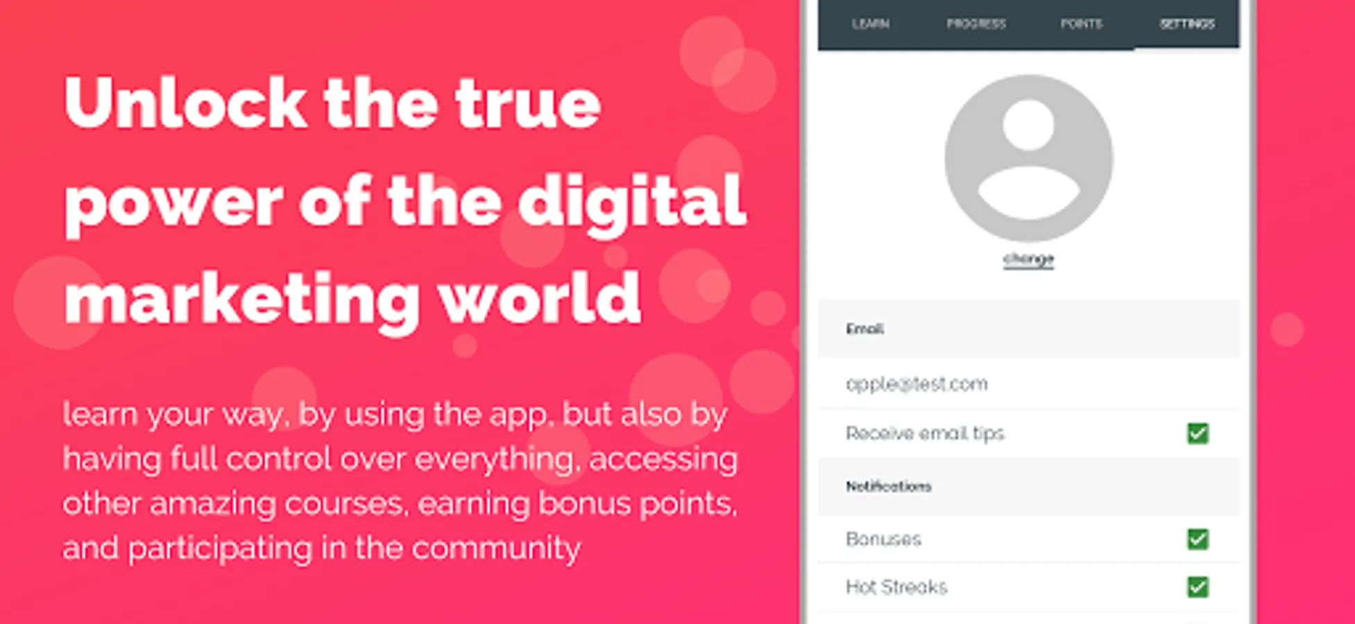 You earn points by passing a quiz after every chapter! This is the next level of learning digital marketing!