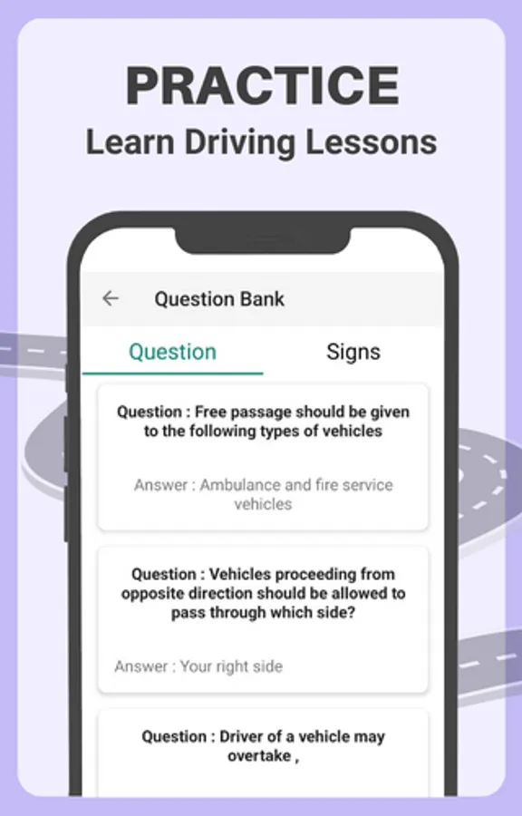 Time Bound Test: Exactly same as RTO test, random questions and road signs related questions will be asked in this exam. Time limit for each question is exactly same as approved by state RTO Department.
