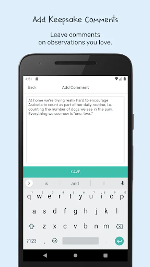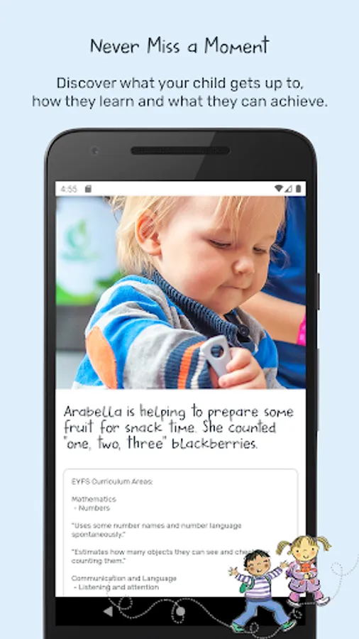 View individual observations including text, photo, audio and video logs of what your child is achieving at their early years setting. Add comments and ‘like’ your favourites.