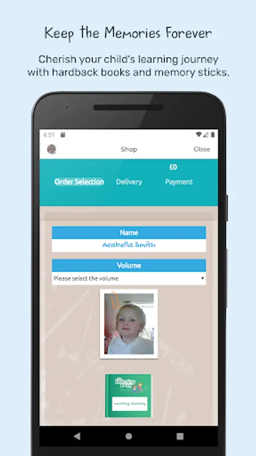 Keep your child’s memories forever by printing their learning journey in beautiful hardback books and compact memory sticks