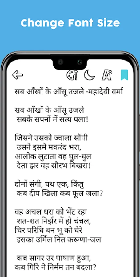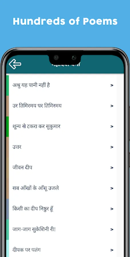 हिंदी कवितायेँ Hindi Kavita is the app for Hindi Kavita (Poetry) Poem Lovers.This app contains poems from well-known & famous names of Hindi Poetry. The app is a collection of thousands of Hindi poems which is available for free.