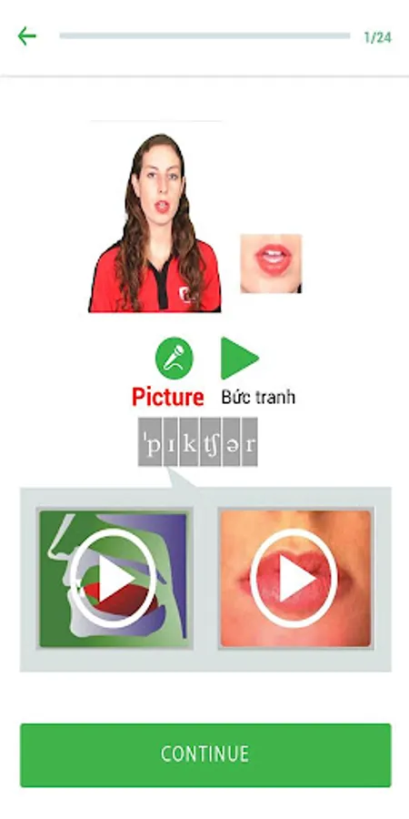 + App này tốt cho người muốn luyện toàn diện 4 kỹ năng Nghe, Nói, Đọc, Viết và nâng cao vốn từ vựng bằng những công cụ giúp bạn có thể ghi nhớ hơn 100 từ vựng sau mỗi bài học.