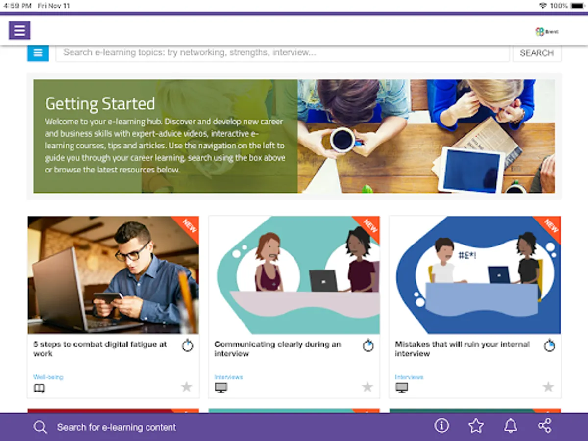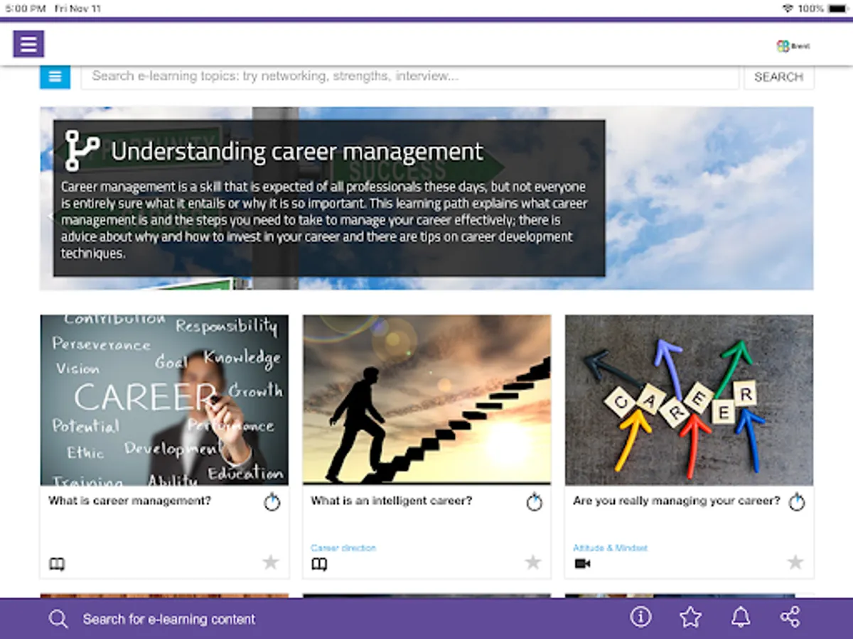 - CAREER E-LEARNING: Short courses tackling everything career-related from self-awareness to succeeding in the role