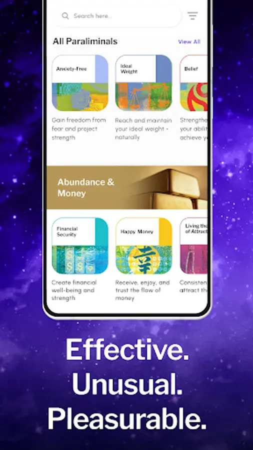 Popular Paraliminals including Abundant Money Mindset, Five Elements Healing, Ideal Weight,