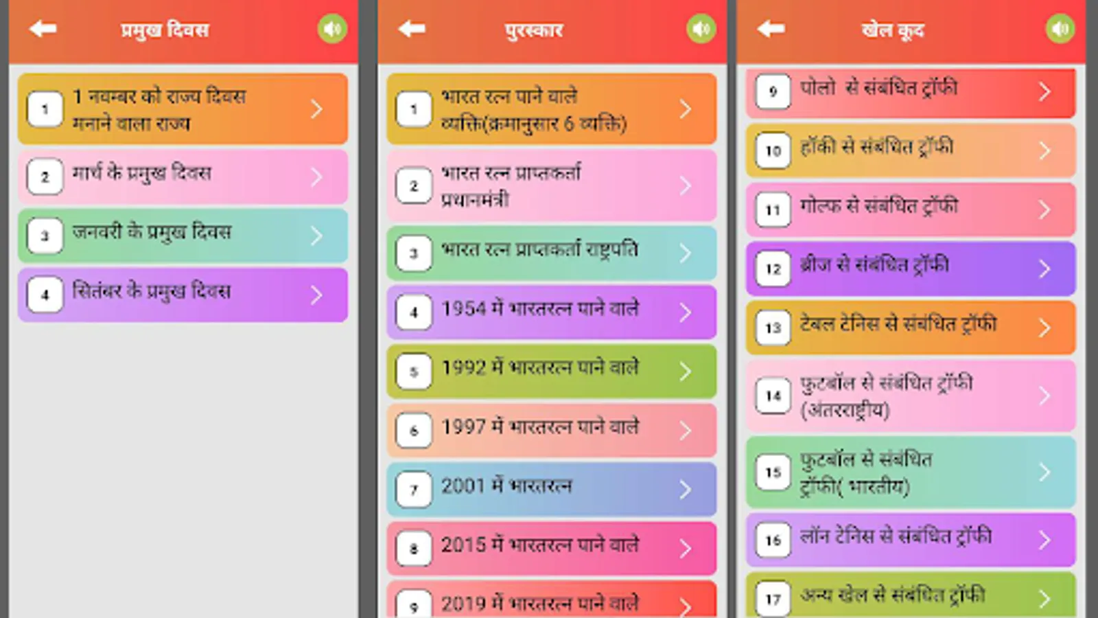 It contains the topic related Topics covered in the Gk Tricks app: Current Affairs, General Knowledge, the Constitution of India, Indian History, General Science, Indian Agriculture, Indian Animals, Indian Architectural, Books and Authors, Chemistry, Electrical, Environmental, Indian Geography, Indian Historical Places, Science Invention, National Symbol, Personalities, Indian Religions, Science, Sports, Sports, and Games - Cups and Trophies, Technical, Trade And Industry, Capitals Of Indian States, Indian Economy, Indian History, Indian Political
