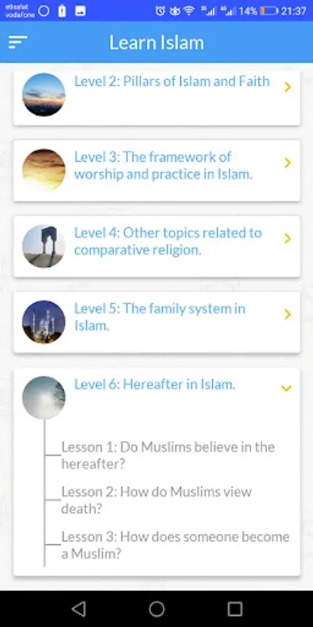 Learn Islam is your easy Guide to Learn about Islam step by step for Muslims and non-Muslims who would like to understand Islam.The education system at the app consists of 6 levels that include basic concepts and terminology, pillars of Islam and Faith, Hereafter in Islam and other topics that concern the non-Muslim and the new Muslim.