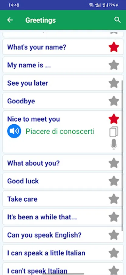 Learn Italian Language Offline Pro has 1622 common phrase in Italian Language with sound and you can use all of them without network. Very useful for you learn and go to travel to the world.