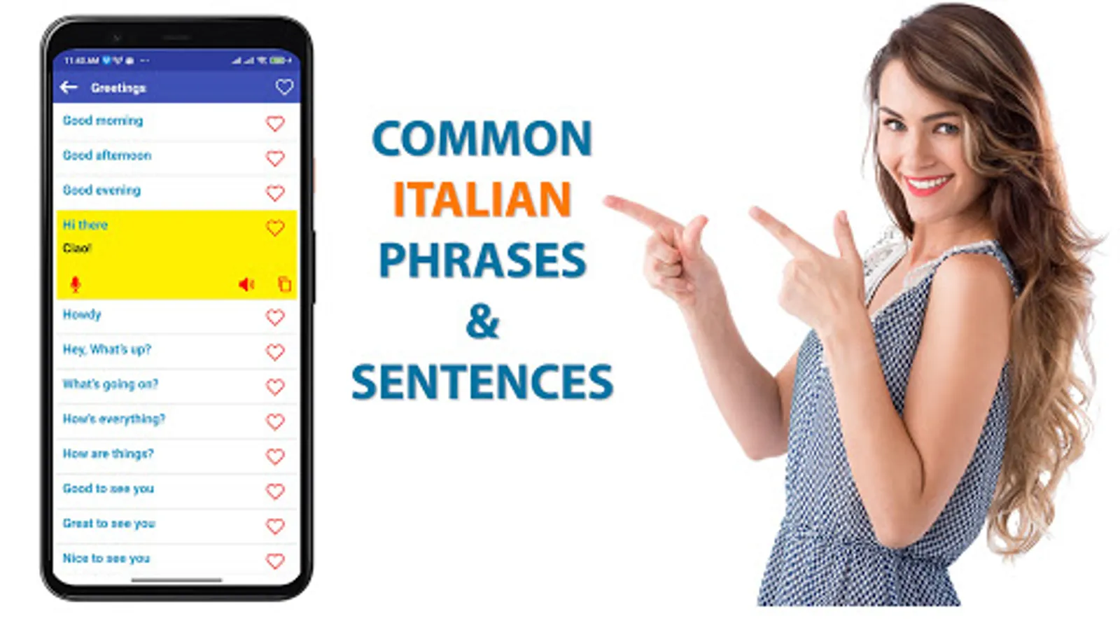 Learn Italian Language Free application consists of common Italian phrases in conversation.