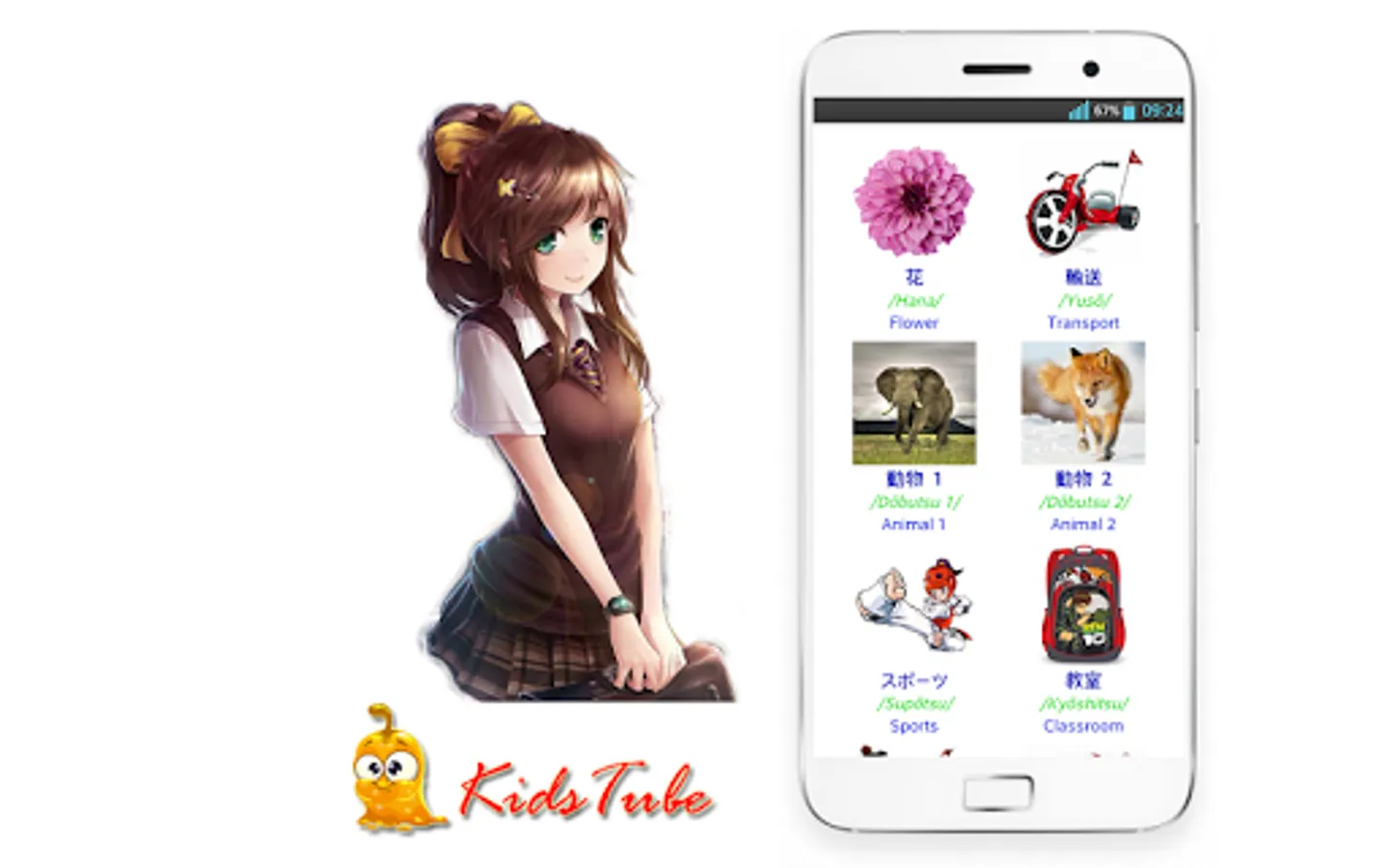 Learn Japanese Vocabulary for Kids is an educational application for you to learn Japanese effectively. With this free app to learn Japanese Vocabulary for Kids, you can recognize Japanese Alphabet, animals, fruits, color, food, numbers.... Teach Japanese Vocabulary for Kids is important language mandarin development. Learning while playing is the best fun and effectively way for you to learn Japanese easy.