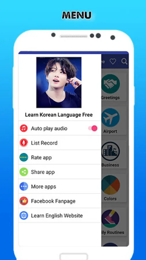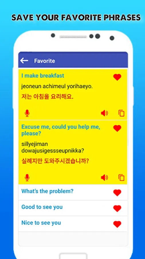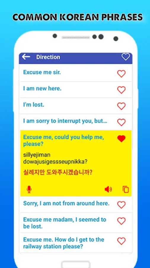 Learn Korean Language Free application consists of common Korean phrases in conversation.