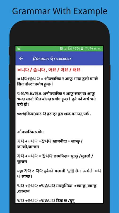 Korean Language Learning app designed specifically for Nepali EPS students! Our app is the perfect tool to help you learn Korean quickly and easily. With our expertly designed lessons, you can easily master Korean grammar, vocabulary, and meanings. You can read this book even if you're offline.