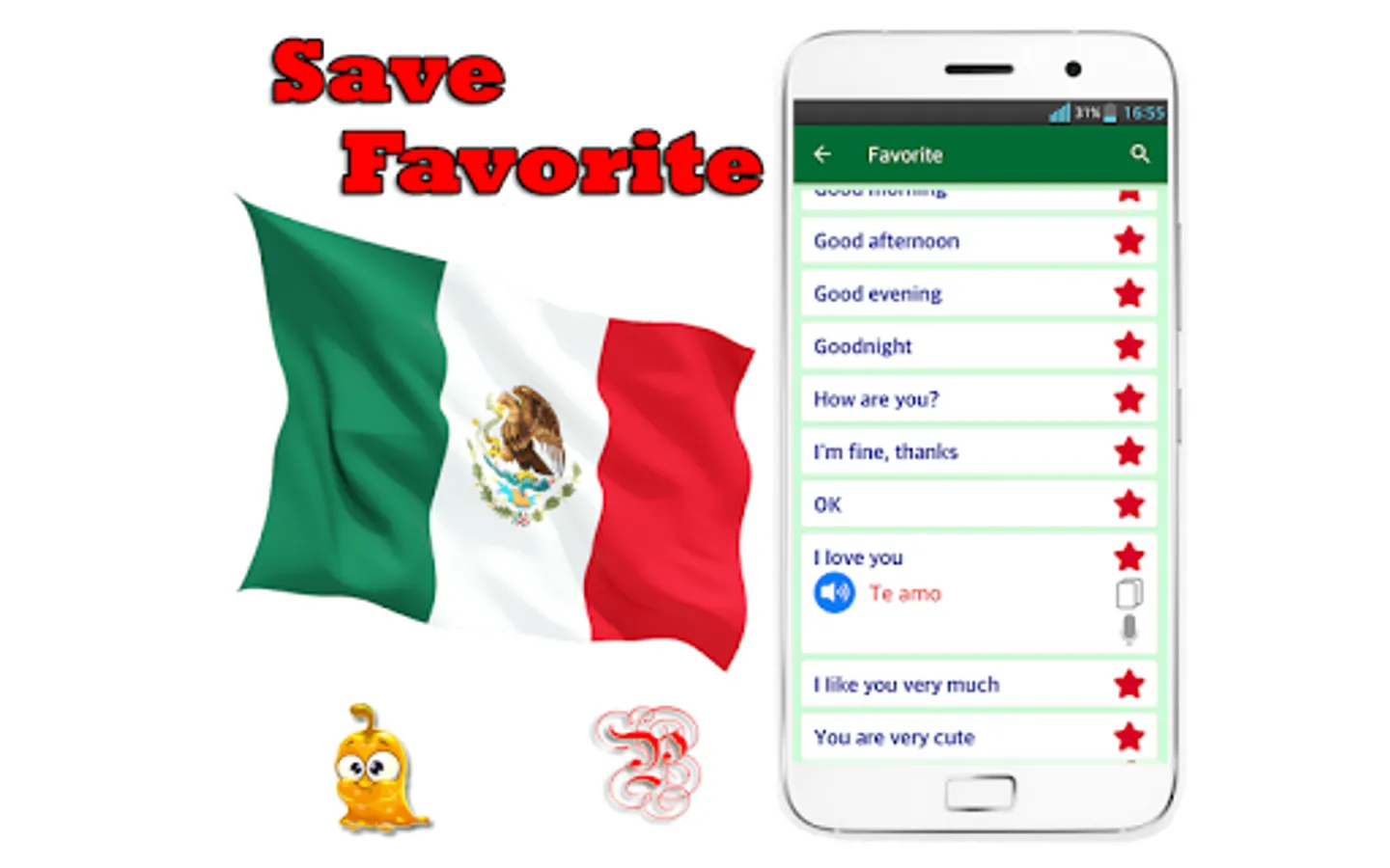 * Tongue Twisters: To tranning your tongue when speaking mexican spanish language. Very useful for you to improve pronunciation and speaking spanish
