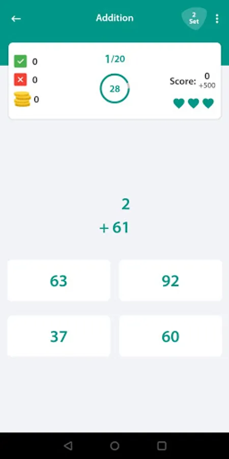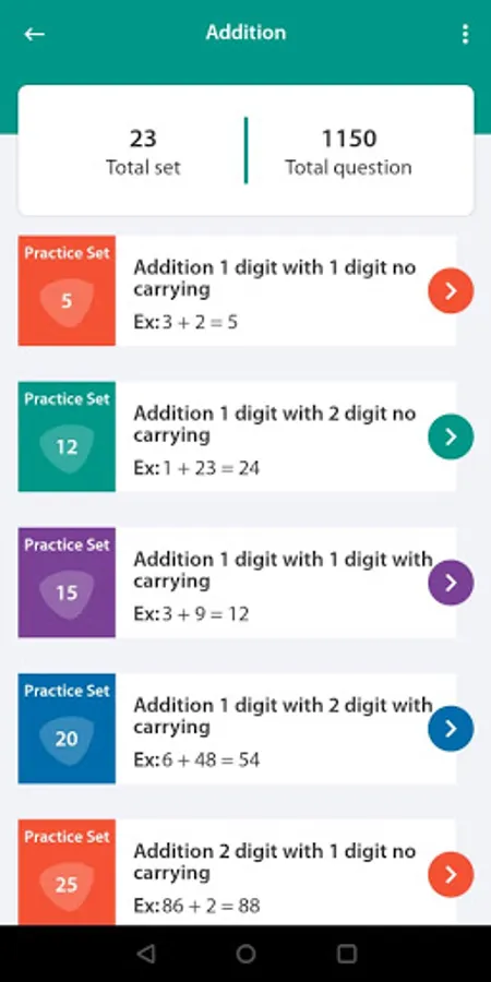 Each category has different play modes to improve math skills - Play, Learn, Quiz, Practice, Duel and Test. Math games can be Educational Learning for kids or brain training app for Adults. Basic and simple Math Game of addition, subtraction, multiplication and division with colorful worksheets. Each set of worksheet shows a score after completion.