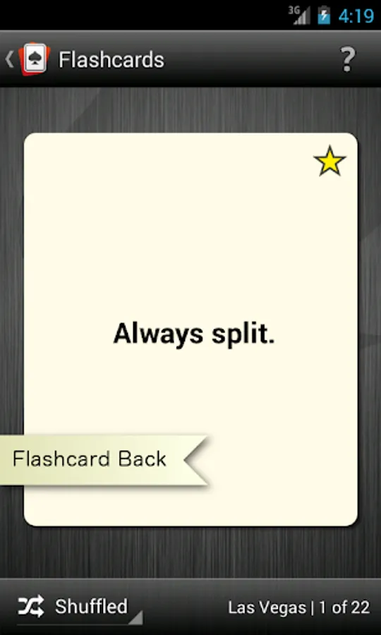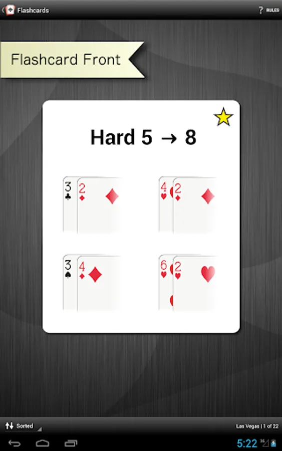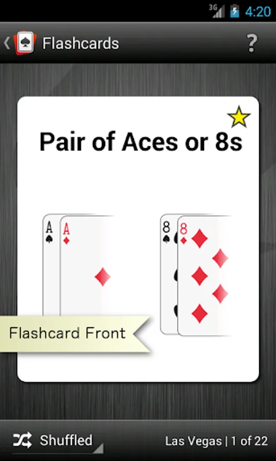 * Flip through simple basic strategy flashcards and learn the correct move to make on any hand. Avoid spending hours fumbling with clumsy blackjack charts.