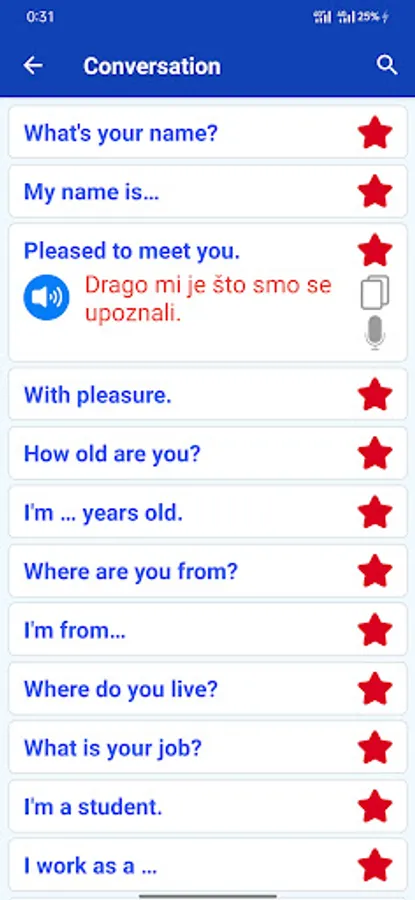Learn Serbian Free Offline has 1066 common phrase in Serbian with sound and you can use all of them without network. Very useful for you learn and go to travel to the world.