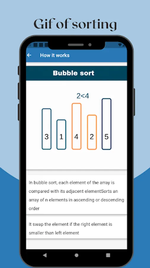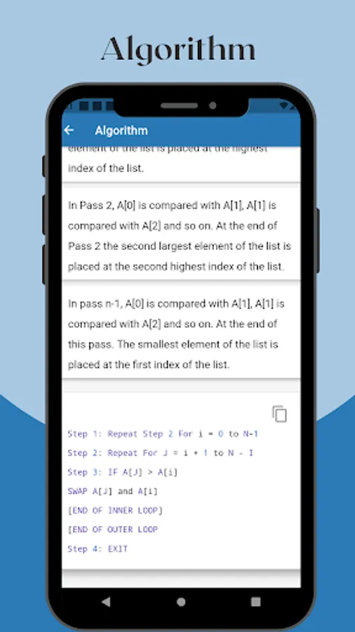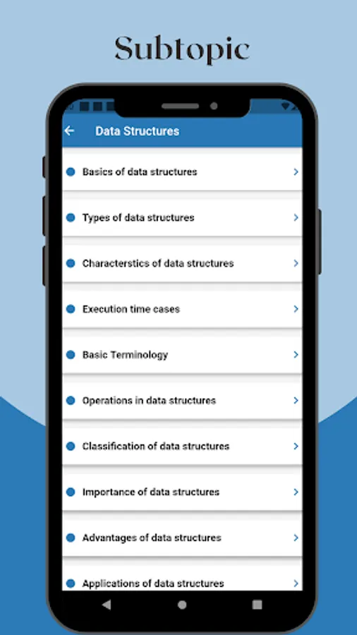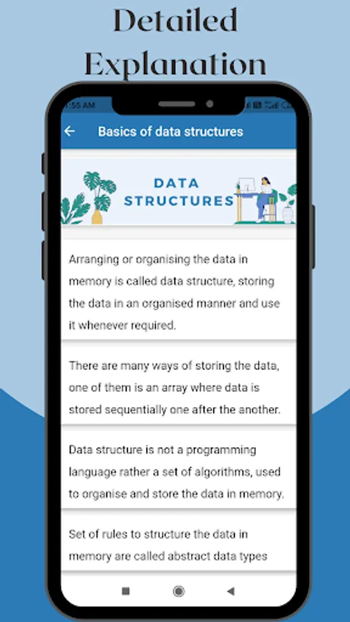 DSA is designed for beginners and experts, all concepts in this tutorial are categorized chapter-wise, with neat and clean explanations along with the examples, images are added to make you understand the concepts easily, and Gifs images are added for a clear understanding of the topics, most frequently asked interview question and answers are collected in application. This tutorial app gives you the flexibility to read all concepts with examples, and the copy code snippet option is included to make you comfortable using the example code, search for the topic you want to read, and start reading, reach us any time if you have any queries.