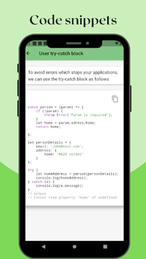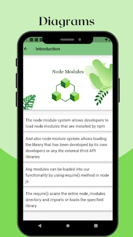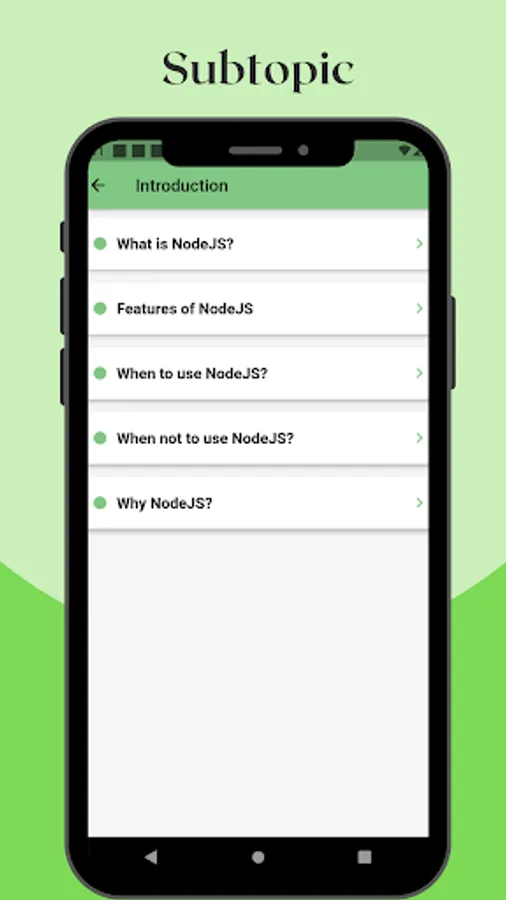 Node.js application is designed for beginners and experts, all concepts included right from the basic to advance chapter wise, neat and clean explanation of the concepts, real-world examples are given to make you understand the concept thoroughly, along with the Node.js other programming concepts that are necessary to be strong in node.js are included in this tutorial application such as Javascript, Express JS, Algorithms, NPM just to make master in node.js, reading flexibility for the uninterrupted learning process, most frequently asked interview question and answers are listed in the application, at the end of the course you will be a master in Node.js and can crack any interview.