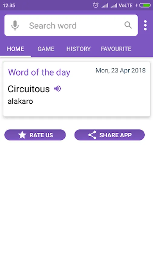 • Random search button (shuffle), useful to learn new words.