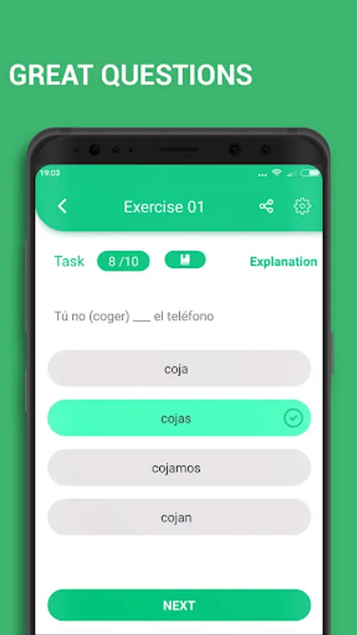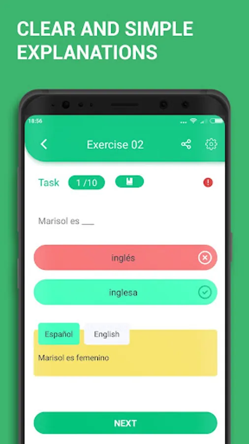 - Lots of great exercises in A1, A2 and B1 level. With thousands of multiple-choices questions in various topics, our Spanish language learning app gets you ready for any grammar exams.