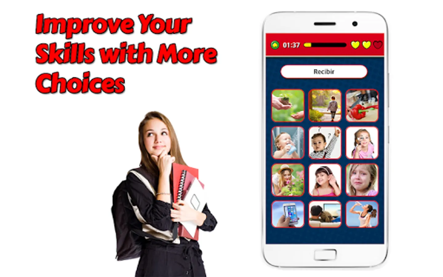 So, Game to learn Spanish has 2 fun game. In game, you can practice phonics Spanish, help you remember vocabulary better. One word will be automatically pronounced, you have to listen what is it, then choose true image by touching screen.