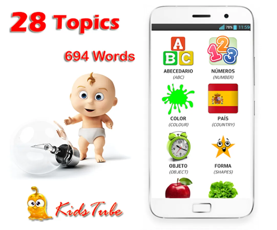 Learn Spanish for Kids is an educational application for your kids to learn Spanish effectively. With this free app to learn Spanish for kids, kids can recognize Spanish Alphabet, animals, fruits, color, food, numbers.... Teach Spanish for Kids is important language for kids development. Learning while playing is the best fun and effectively way for your kids to learn Spanish easy.