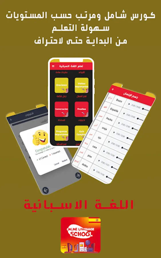 This application is an integrated course to learn the Spanish language for beginners from scratch to professionalism, as you will find in it more information from the school because it is explained in a simplified way and prepared by specialists in this field