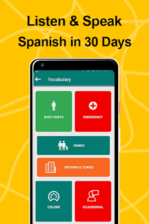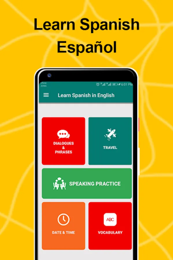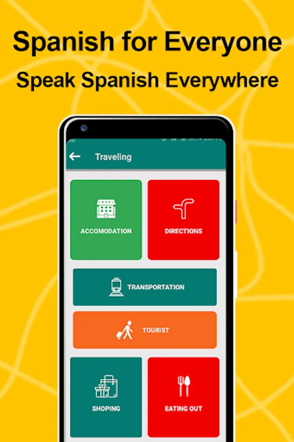 Divided in to 20 Different Categories this app almost covers all the basic aspects of Spanish Language. This app is absolutely free of cost. All the features are available to users for free. From Greetings to Traveling to Dating to Shopping this app covers it all.