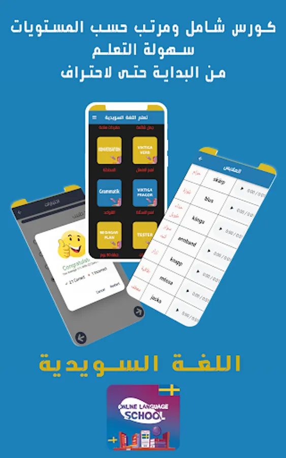 This application is an integrated course to learn the Swedish language for beginners from scratch to professionalism, where you will find more information from the school because it is explained in a simplified way and prepared by specialists in this field