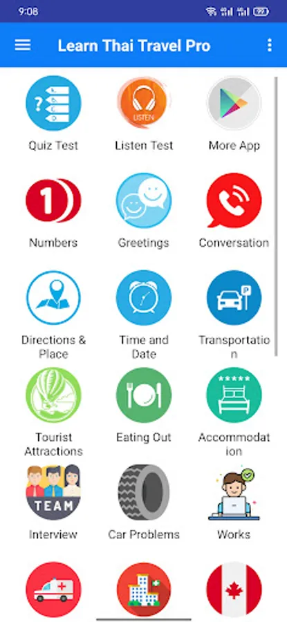 Learn Thai Language Travel Pro has 1470 common phrase in thai language free with sound and you can use all of them without network. Very useful for you learn and go to tralvel to the world. Learn thai grammar is very easy!