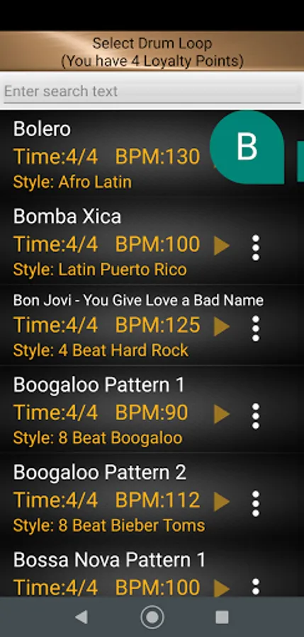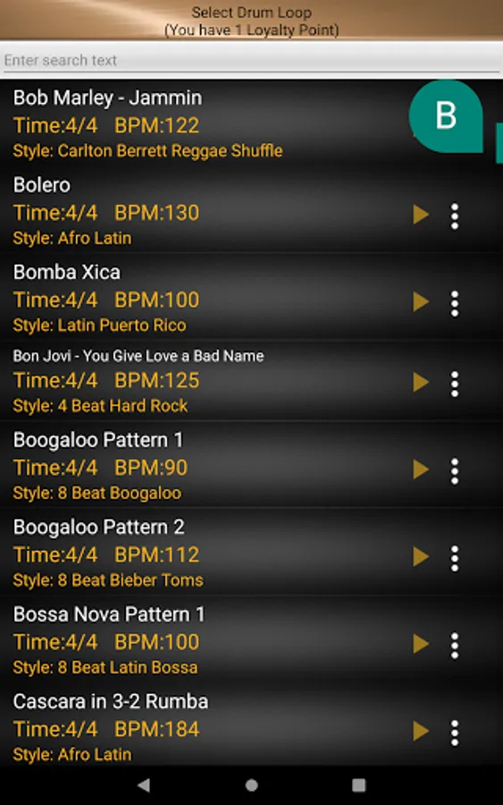 • Over 500 grooves from all genres (Rock, Blues Jazz Shuffle, Latin, etc) and great bands. The app contains the greatest rhythms and loops from the most famous drummers and the best bands such as GnR, Bonham, Berrett. It has the most extensive list of drum tracks in the market and reliable access to all rhythms is offline and free.